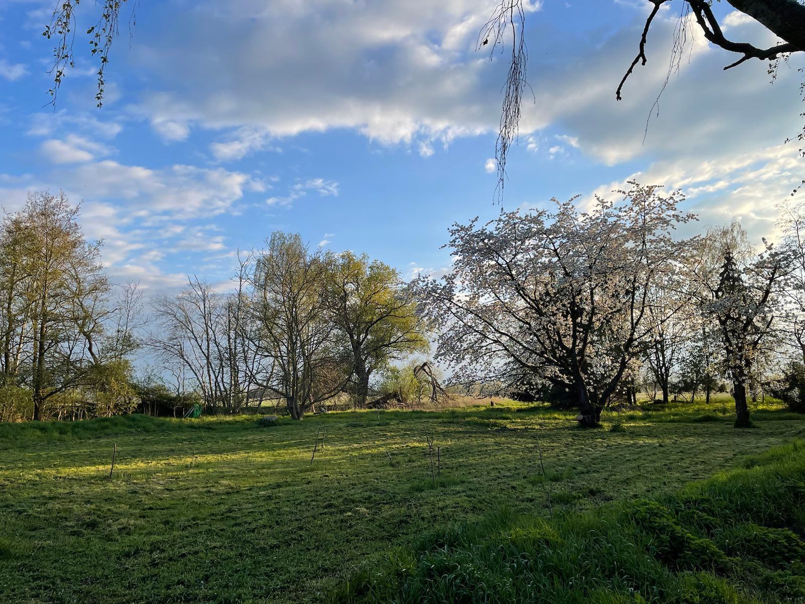 Lagerfeuerstelle, Draußen-Küche und viel Wiese zum Campen und Tanzen erwarten uns.